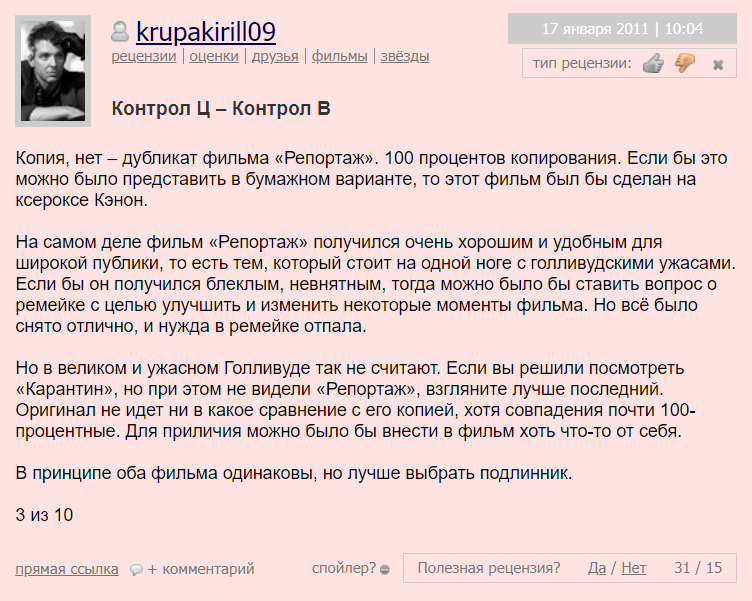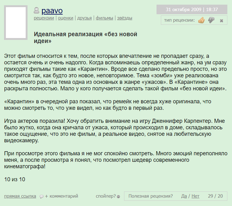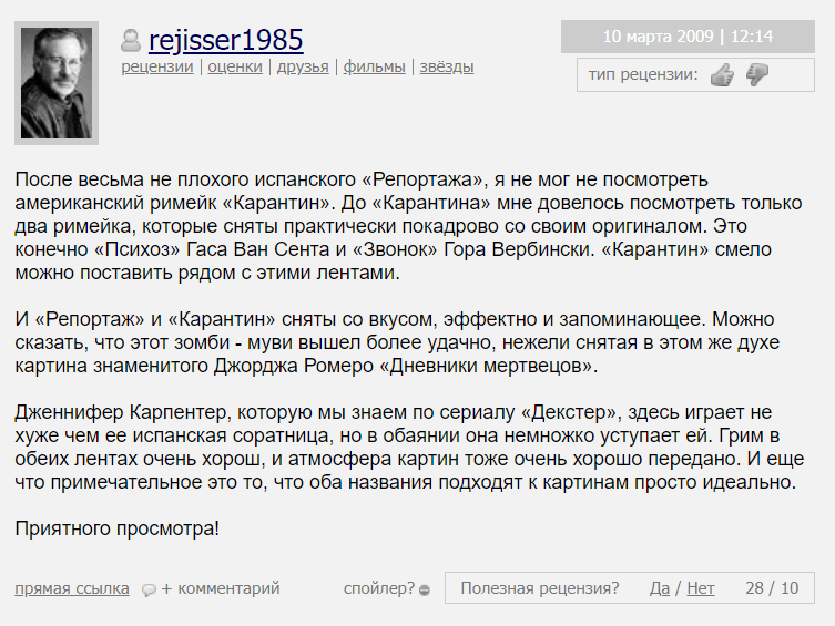 Фильм «Карантин» (2008) получил смешанные отзывы от критиков и зрителей. Вот некоторые аспекты критики, которые часто поднимались: